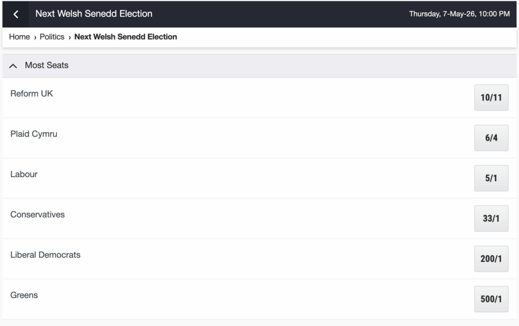 Ladbrokes have finally put up a market on which party will win the most seats at next year’s Senedd election.