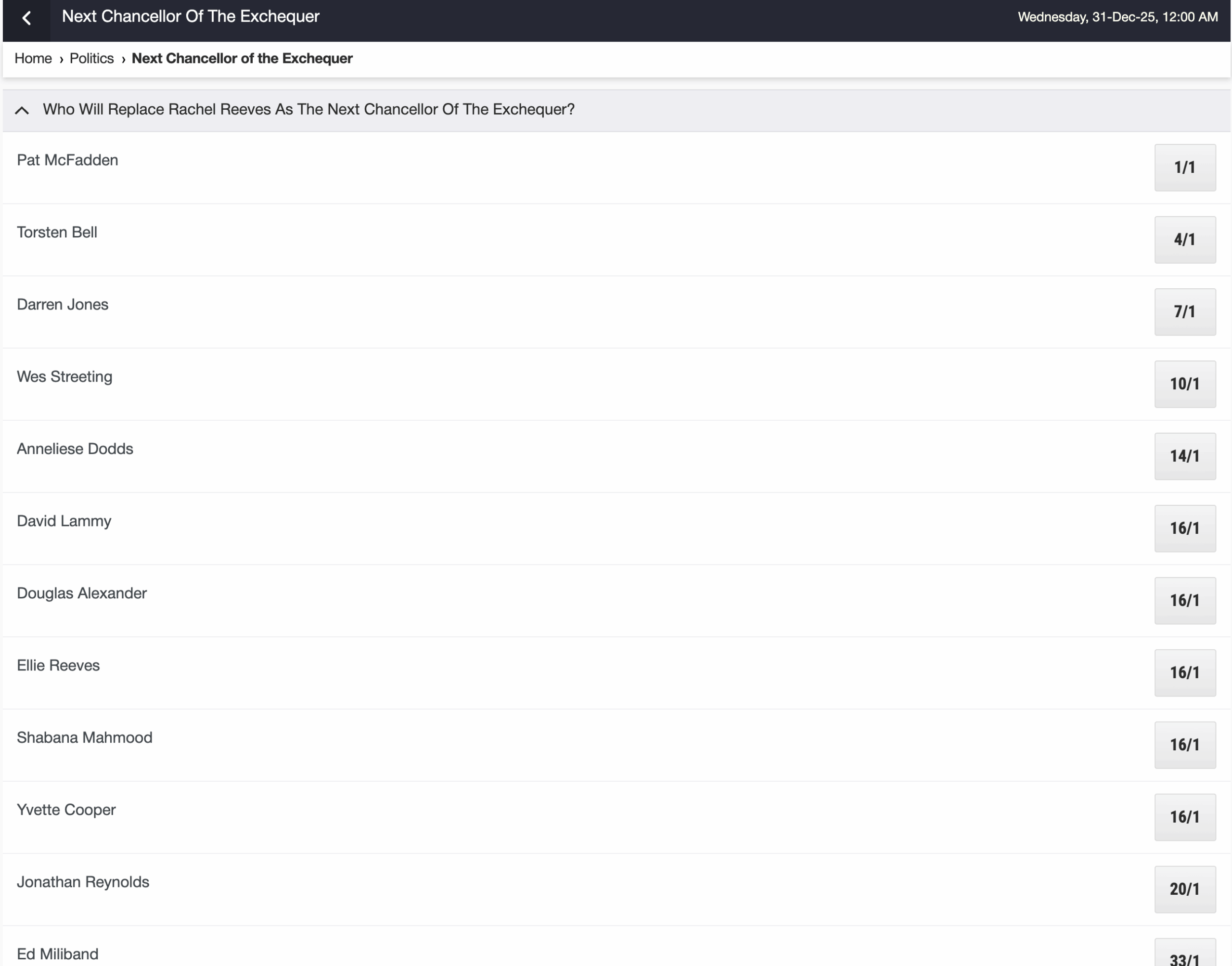 If we do get a second Labour term (and anything is possible under a close first past the election) then I think it might be between Torsten Bell & Darren Jones. Whether PBers want to tie their money up for so long is another matter.