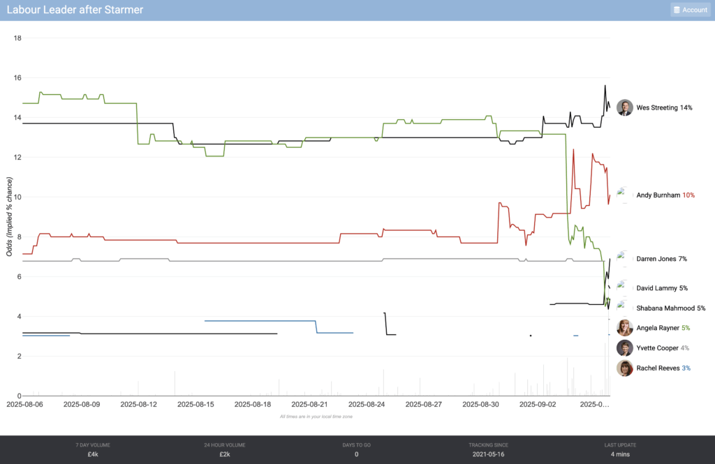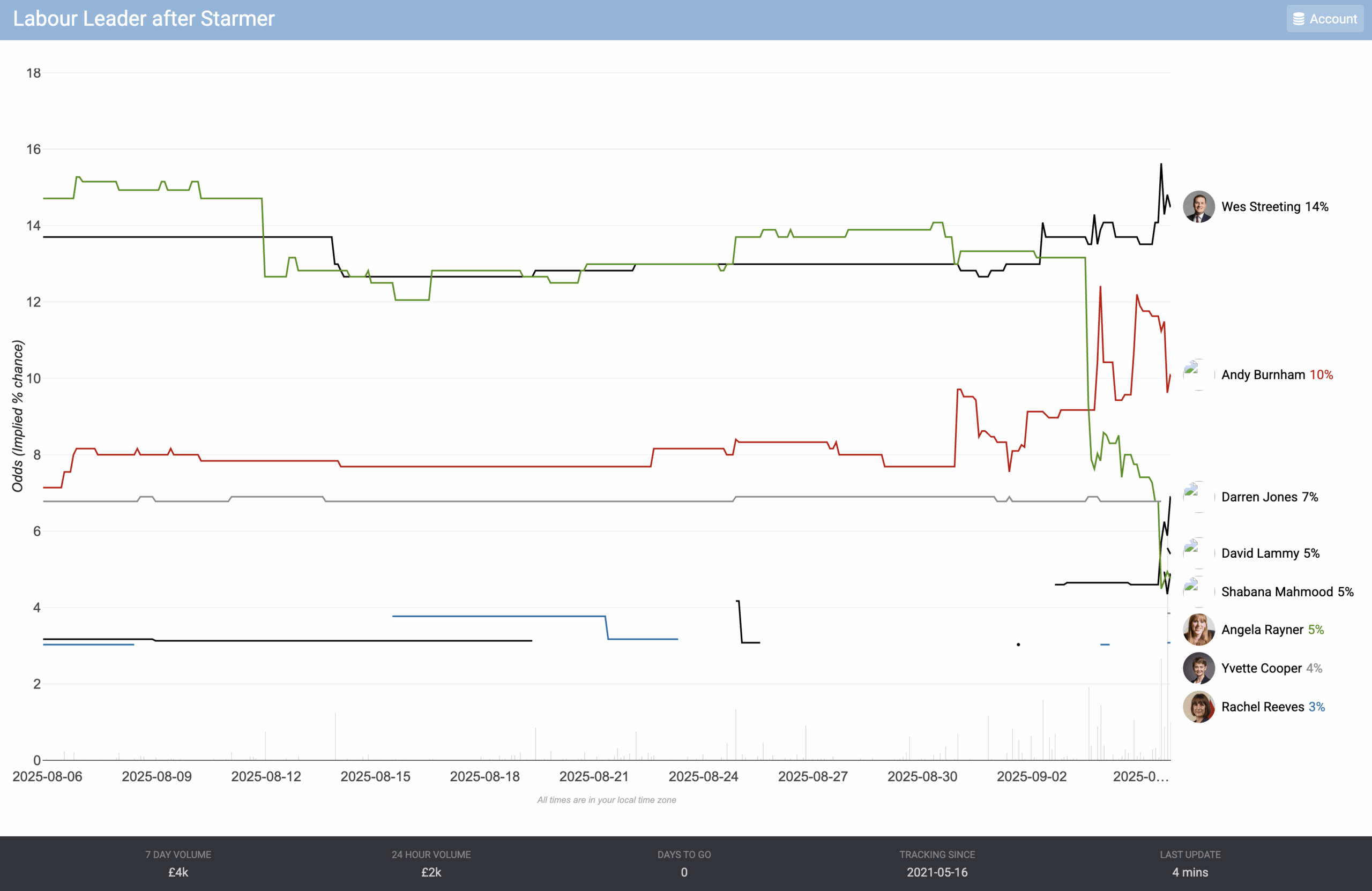 I think it is amusing that Angela Rayner is still rated as a better chance of becoming PM than the Chancellor which says so much about tenure of Rachel Reeves.