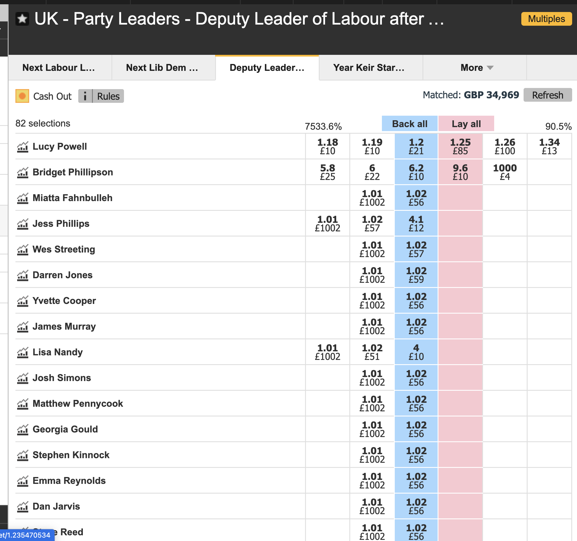 The Labour party conference starts a week on Sunday so there’s that opportunity for Bridget Phillipson, I think there might be some value in backing her on that basis.