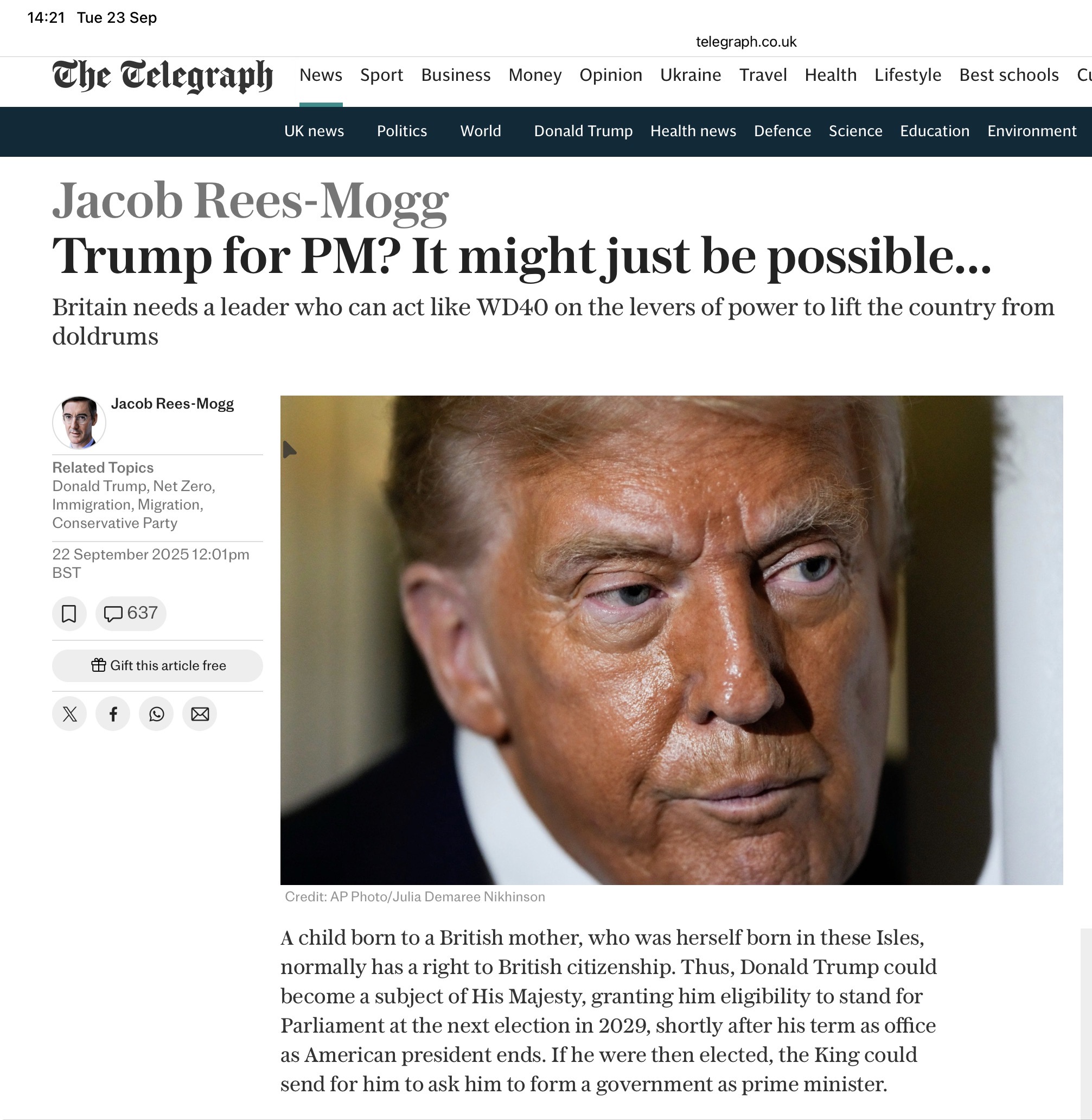 The reason I am so confident about this is Trump’s really poor ratings with British voters even before we consider the logistical and age related challenges of Trump standing to become the Prime Minister of the United Kingdom.