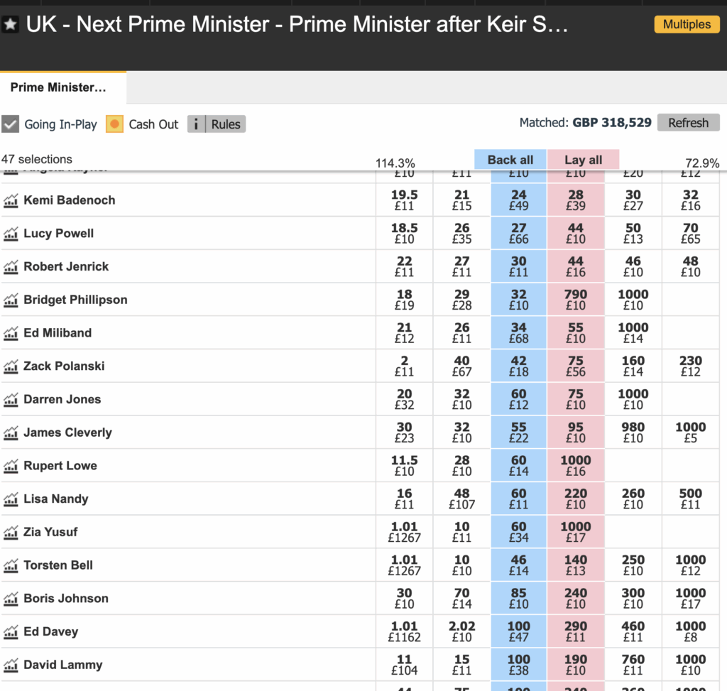 Lammy showed his lawyery brilliance in the clip above and much like my 100/1 tip on Ed Miliband to succeed Starmer, this feels like an excellent trading bet, especially when you consider the likes of Zack Polanski, Zia Yusuf, and Rupert Lowe are considered having better chances of becoming our next PM than Mr Lammy.