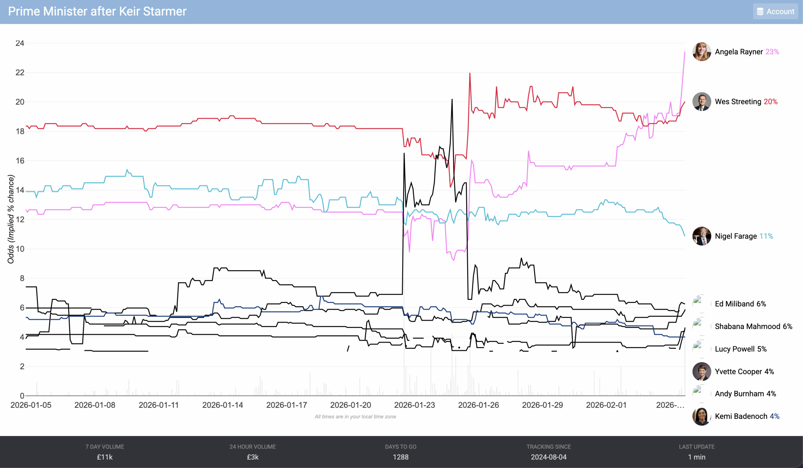 As I noted last week it appears the value might be with Angela Rayner whose political career was in ashes last autumn but now she’s the favourite to succeed Starmer.