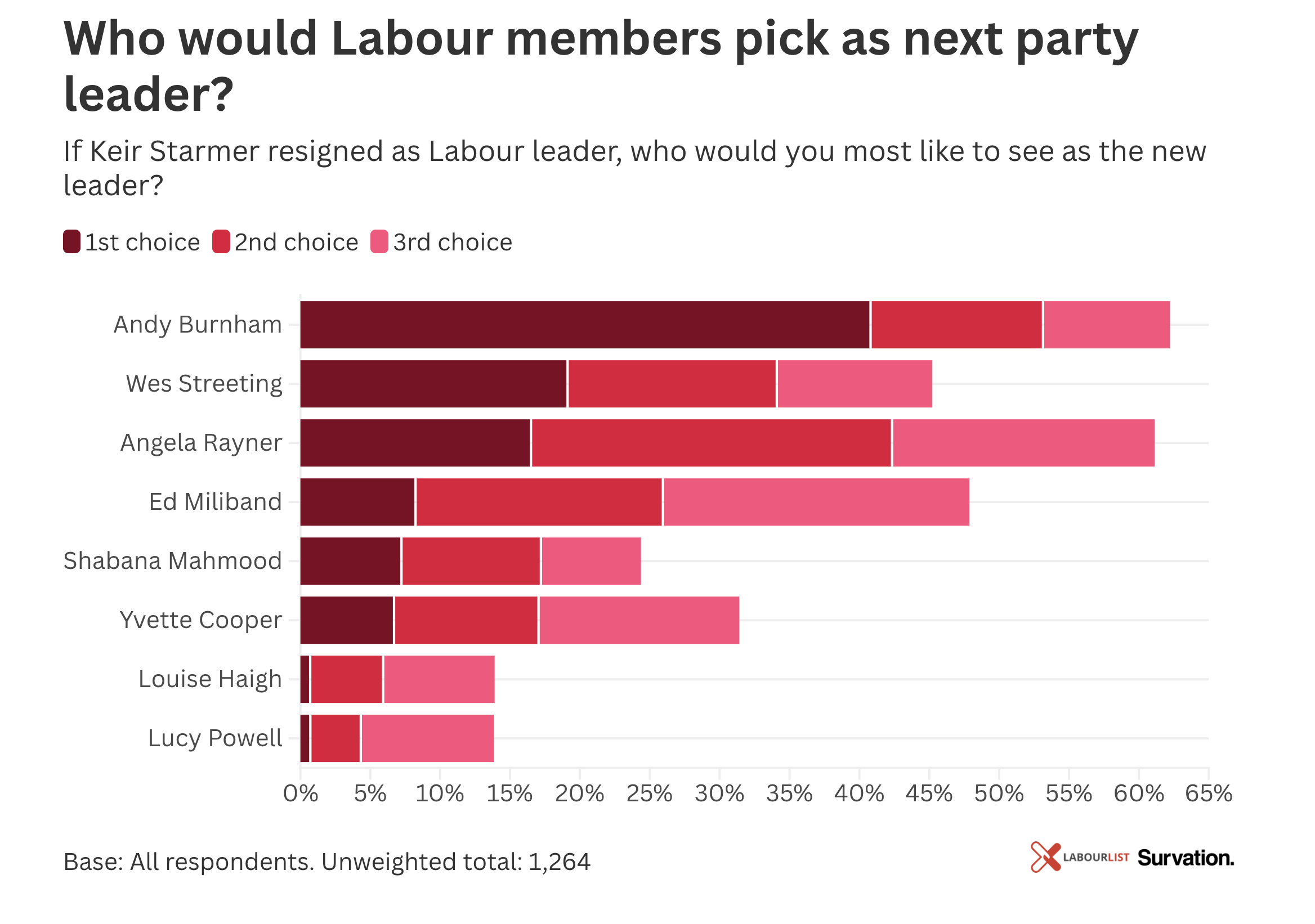 …Greater Manchester Mayor Andy Burnham would also defeat Keir Starmer in a head-to-head leadership contest by 53% to 37%. However, Burnham would be ineligible to stand as party leader as he is not an MP.
