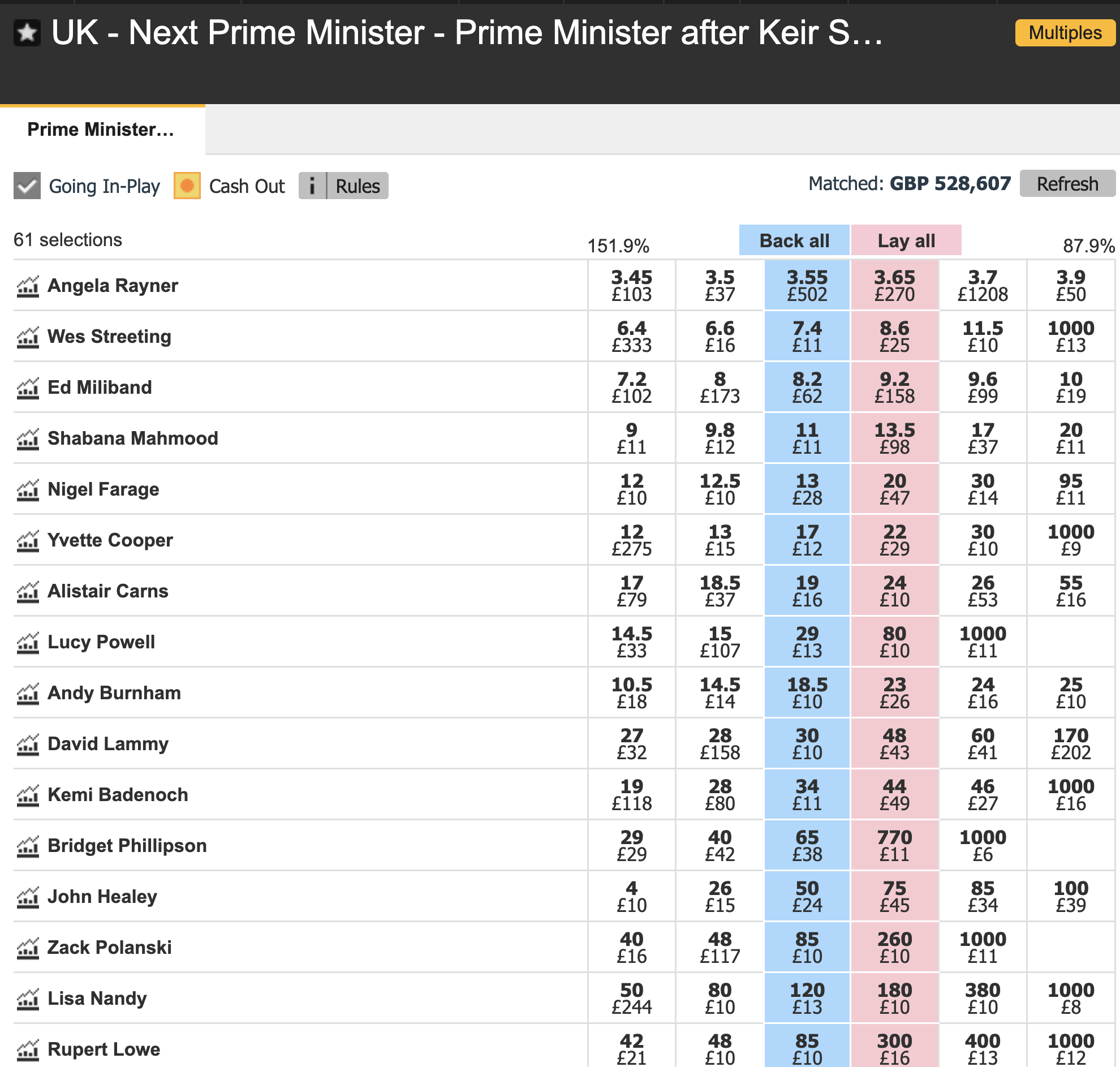 My strategy in this market has generally been to lay Andy Burnham and back long odds bets and I am adding John Healey to that portfolio. He could be the compromise candidate and this has all the hallmarks of being an excellent trading bet.