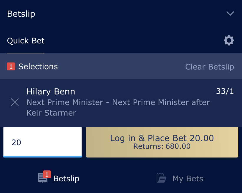 I also think the 33/1 that William Hill are offering on Hilary Benn is worth a punt.