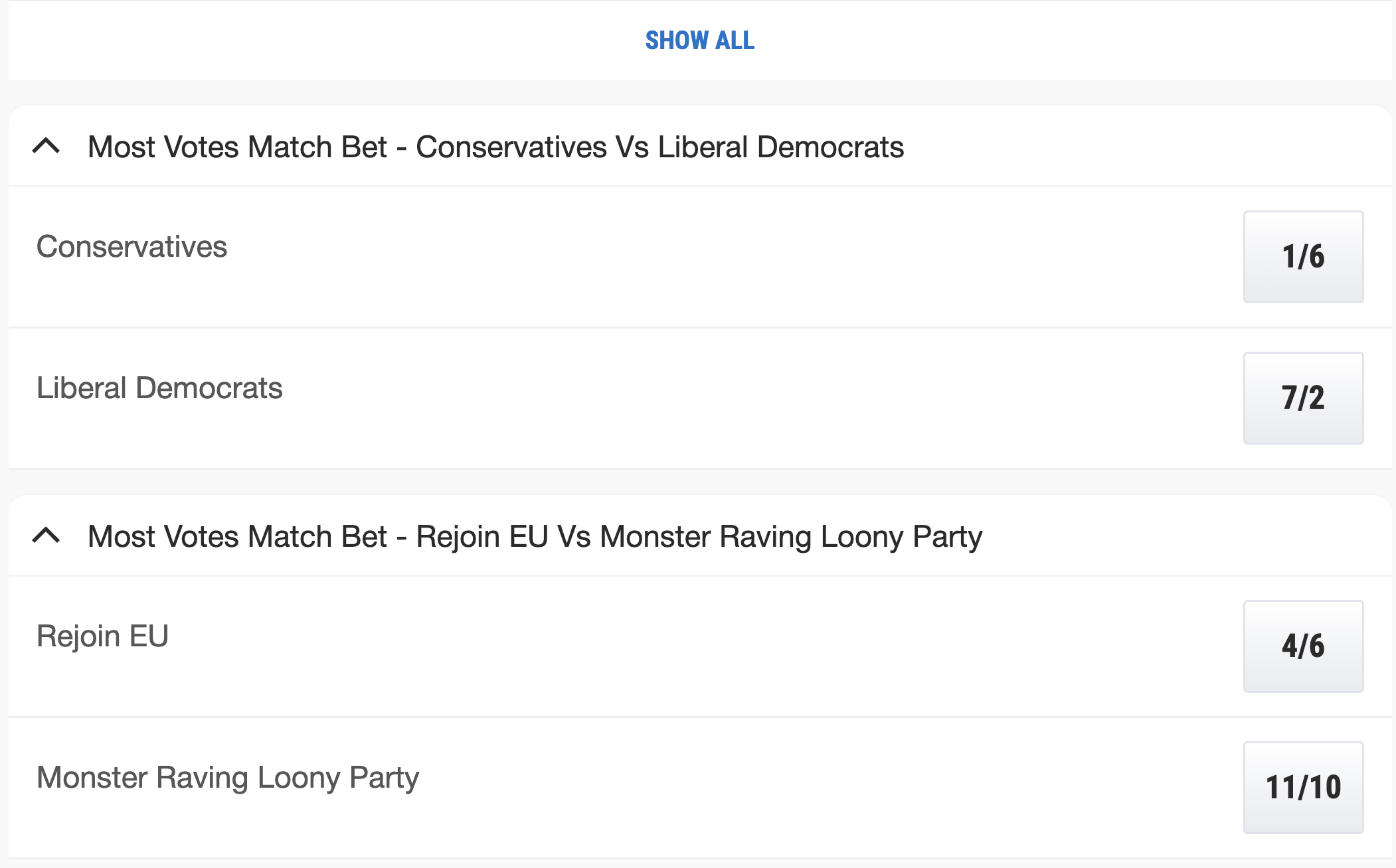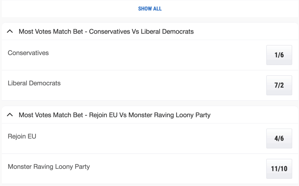 Ladbrokes have some match bets for Thursday’s by-election and I’m not sure if I should bet. I can see both the Conservative and Lib Dem vote shares collapsing like the French army in 1940 but I am not sure which party will sink the lowest. If I had to choose I’d back the Lib Dems in this market based on relative value.
